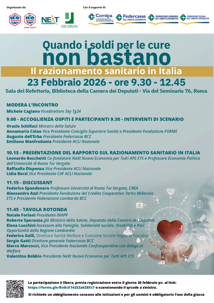 23 febbraio, presentazione ricerca “Quando i soldi per le cure non bastano”